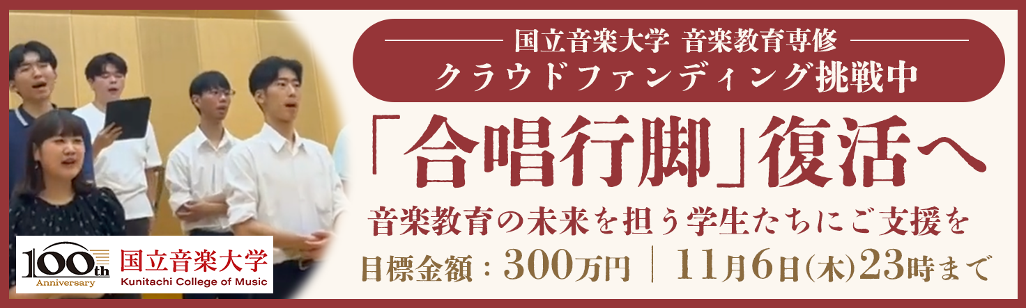 国立音楽大学は創立100周年記念事業として、学生有志による「合唱行脚 Rebirth 〜towards next new generation〜」を実施します。実現に向け、8月8日よりクラウドファンディングを開始します。皆様の温かいご支援をお願いします。