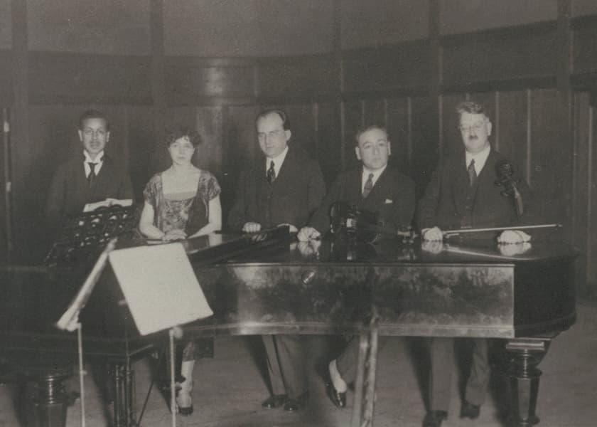 私学であることの本領を発揮し、自由で理想的な音楽学校を創ろうと立ち上がった創立メンバーの中心は、当時の日本では先駆けともいえる音楽マネージャーとして活躍していた中館耕蔵。さらに、声楽家の矢田部勁吉と武岡鶴代、ピアニストの榊原直という皆30代に入ったばかりの若き面々でした。