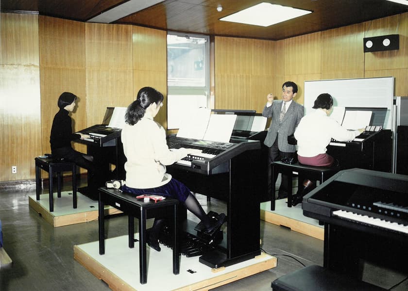 1つは、4年制の音楽大学としては日本初となる電子鍵盤楽器について体系的に学ぶ「応用演奏学科」です。「創作能力」「演奏能力」「楽器と音楽に関する知識」を3本柱とするカリキュラムを編成しました。そして2つ目が、当時としては先駆的な概念ともいえる、コンピュータ音楽を学問として扱うことを中心とした「音楽デザイン学科」です。ここでは音楽と生活の関わりの変化に対応しうる知識や手段を備えた人材を育成することを目指していました。吉田泰輔学長(当時)は、変貌を遂げる現代の音楽シーンにいち早く対応するこの2つの学科から、次代の音楽界を切り拓いていく人材を数多く輩出することを目指したのです。