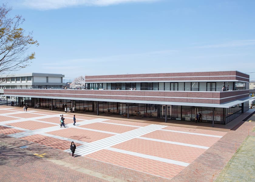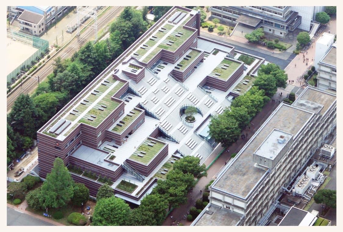 新1号館は、最新の耐震技術を取り入れるなどハイグレードな校舎であり、構内の樹木を生かした屋上庭園など、自然との共生も図っています。外観はピアノを模した階段状の造形で、内装には作曲家の貴重な楽譜を使ったデザインをあしらうなど遊び心にもあふれ、グッドデザイン賞を受賞しました。