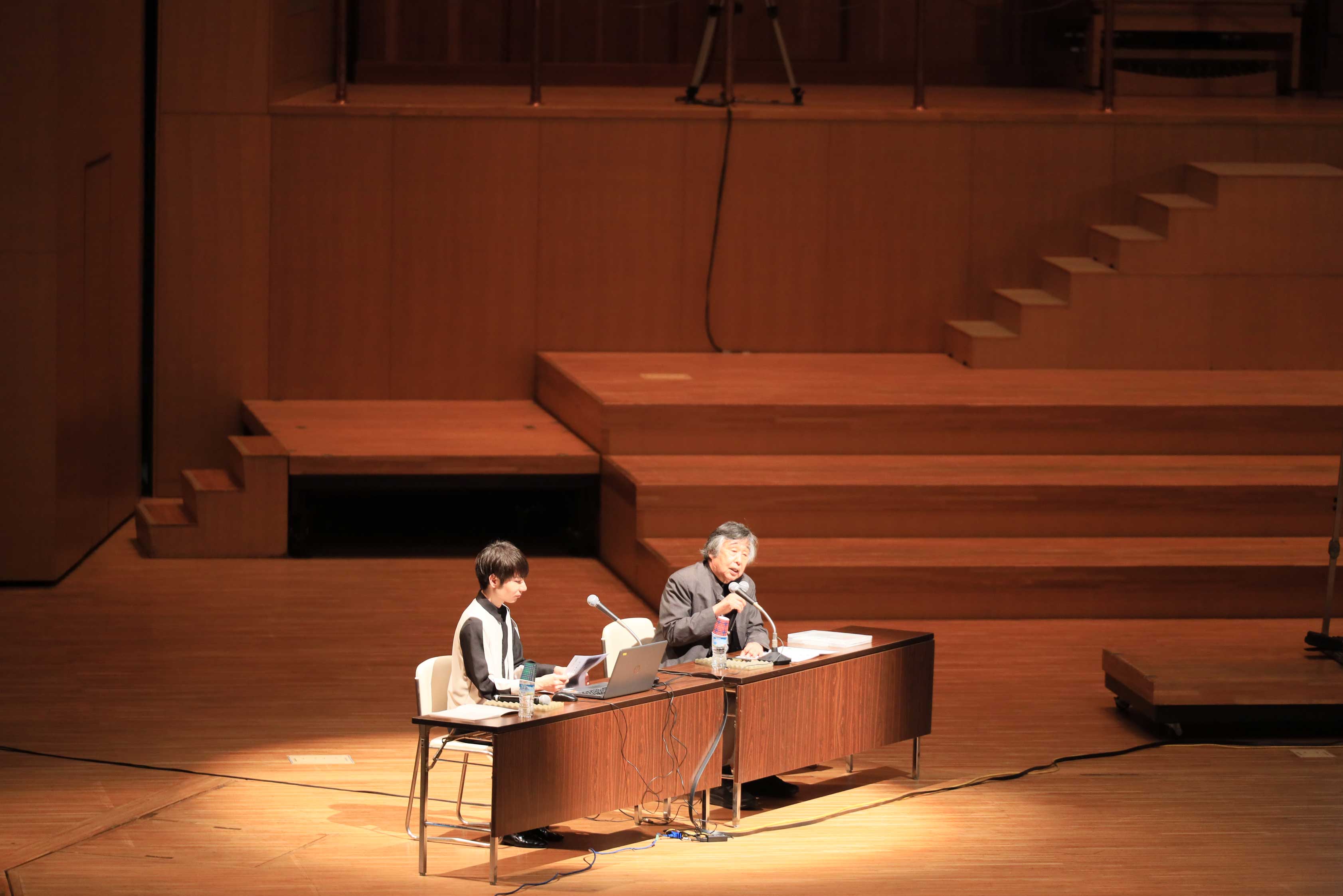 その後のレクチャーでは、前川建築設計事務所所長の橋本 功氏をお迎えし、柴田 翔平氏(2017年度本学卒業)の司会のもと、「前川建築と国立音楽大学」をテーマに特別レクチャーを開催しました。