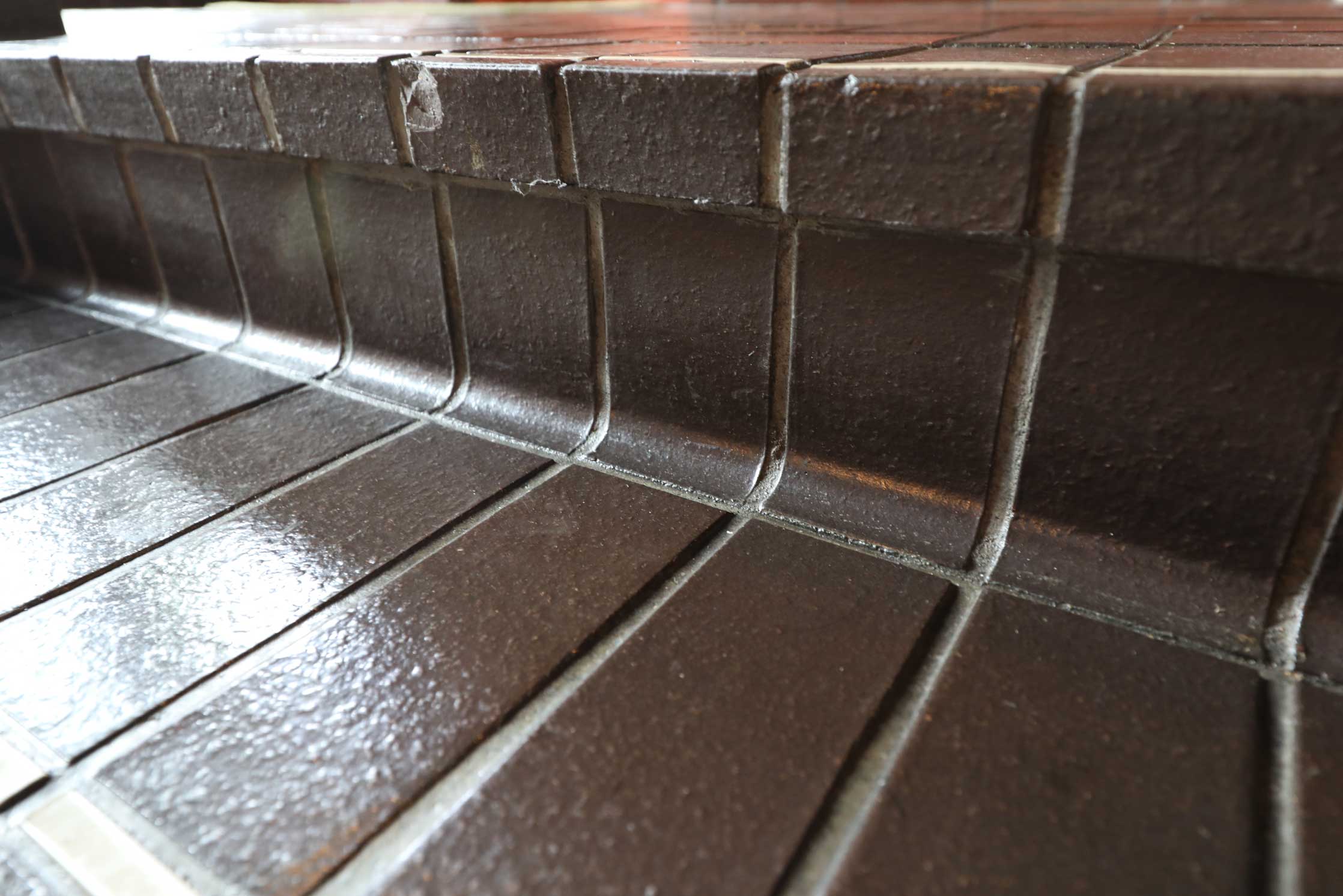 壁・床・階段それぞれの異なるタイルが館内を彩り、広い窓ガラスは午前中の穏やかな光を取り込みます。