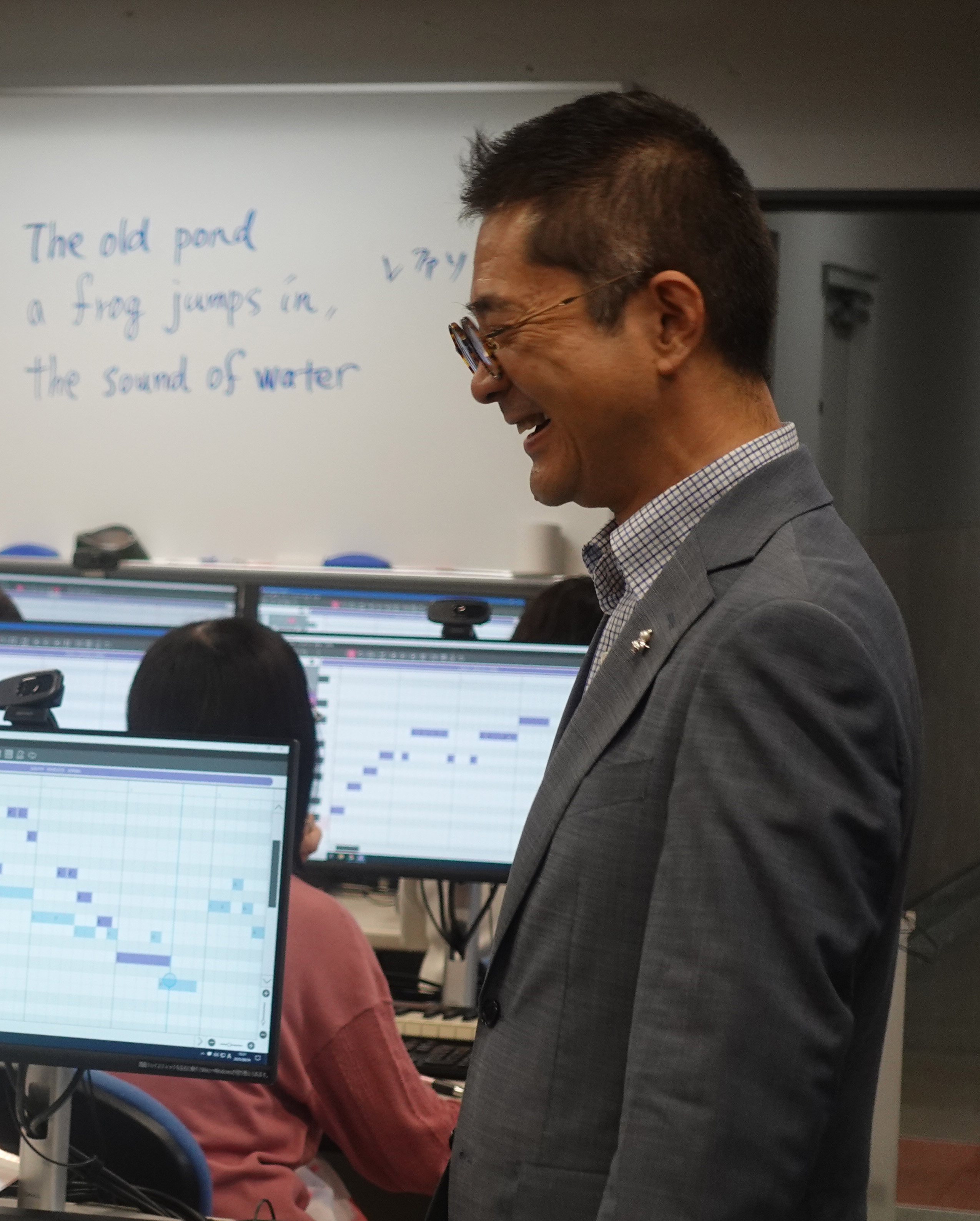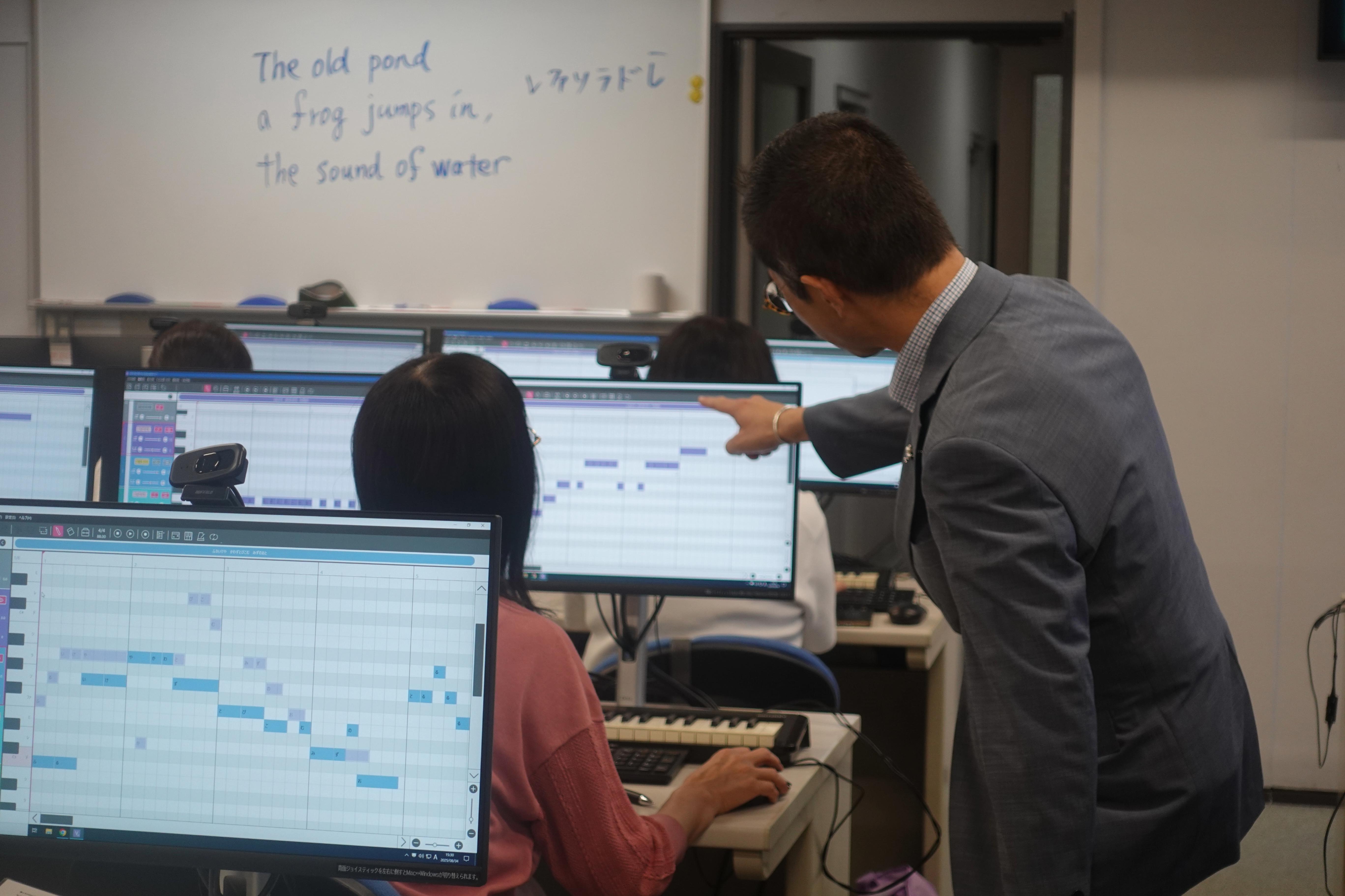 瀧川先生は、この創作活動を通じて日本語の発音やリズム、メロディーと言葉の関係について気づきを得られることを指摘しました。音楽合成ソフトによって、言葉の持つイントネーションや抑揚が創作のイメージを豊かにすること、今の音楽文化に触れることができること、逆説的に人間の持つ表現の幅広さや可能性を実感できることなどがわかりました。