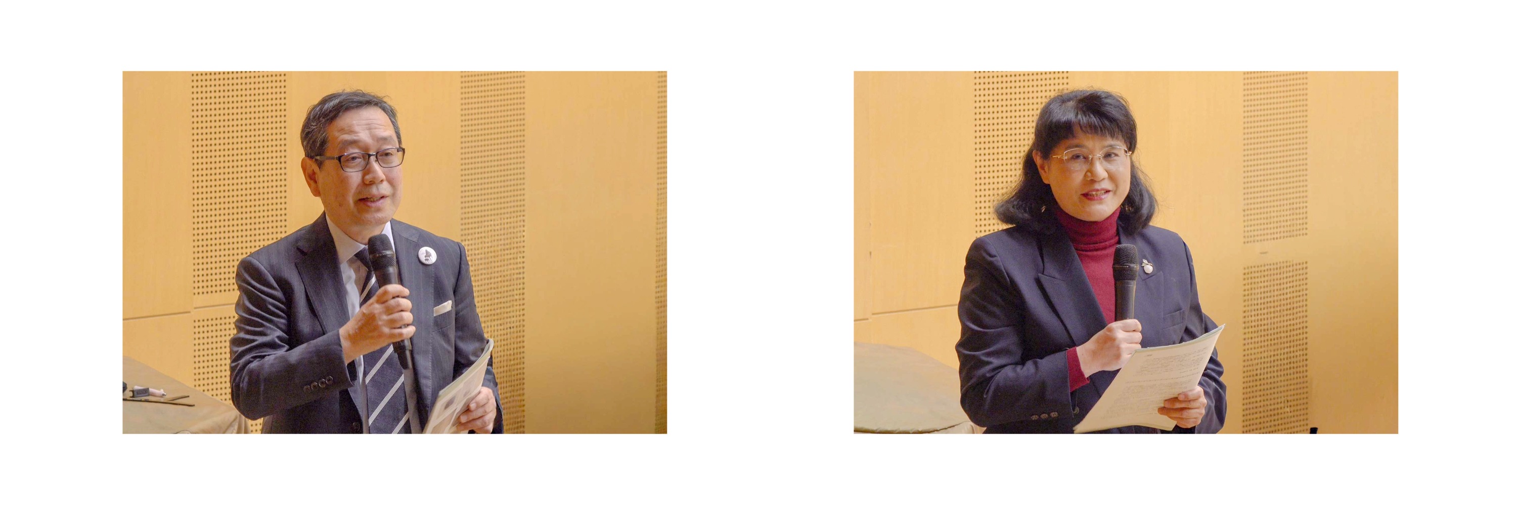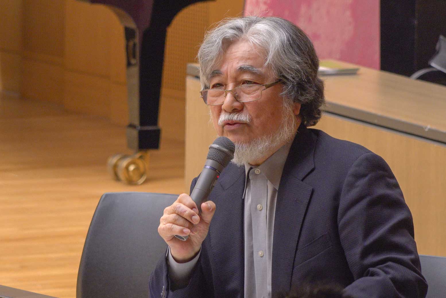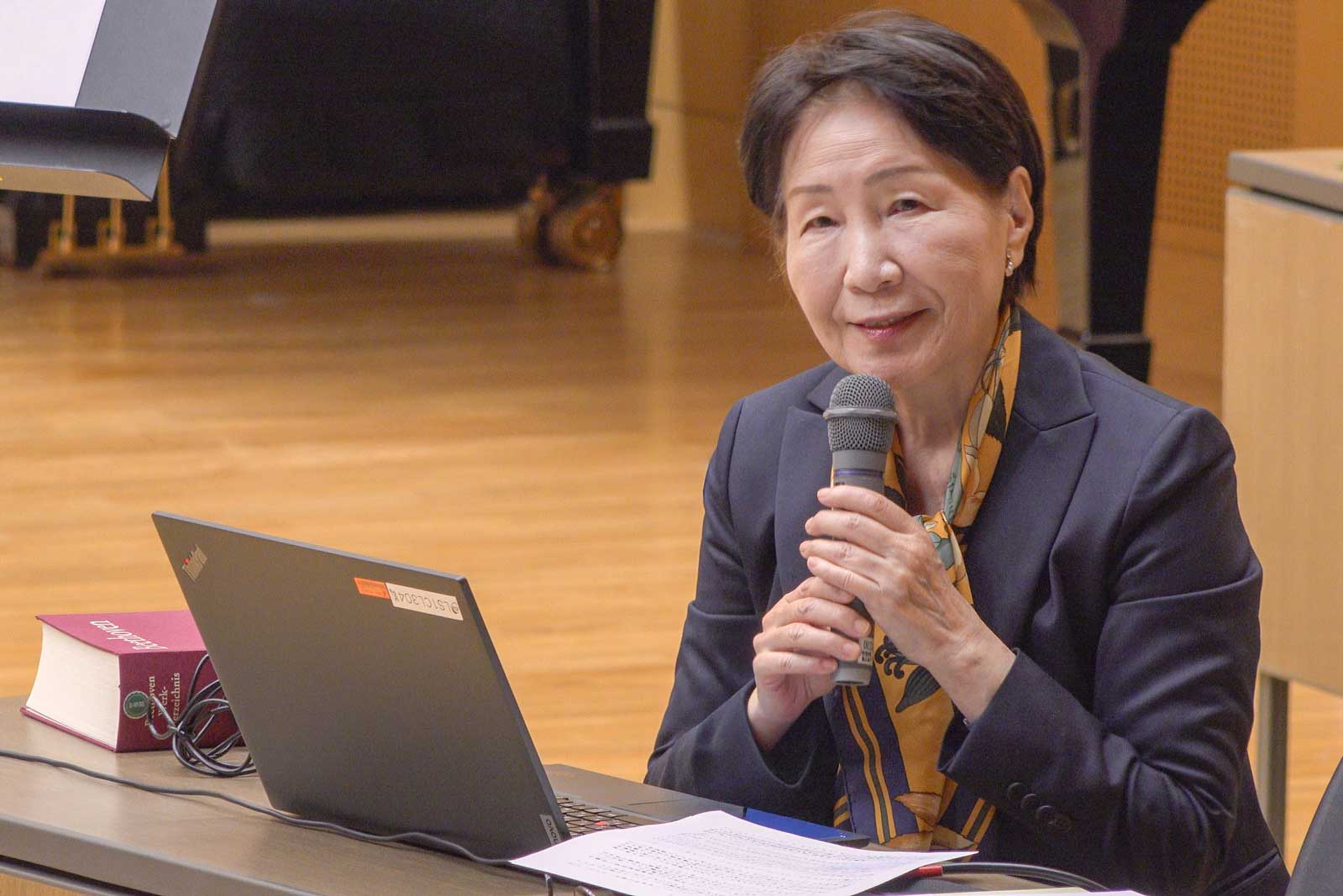 まずは梅本実学長による挨拶で国立音楽大学創立100周年記念プロジェクトの概要についてお話しがあり、つづいて附属図書館の館長である江澤聖子先生からは貴重資料についての概要の説明、登壇される先生方の紹介がありました。特に貴重資料は多くの方の協力によって整理と管理がされてきたことへの感謝、多くの演奏家や研究者にとってそれらが有益なものとなることを願っていることが強く語られました。
