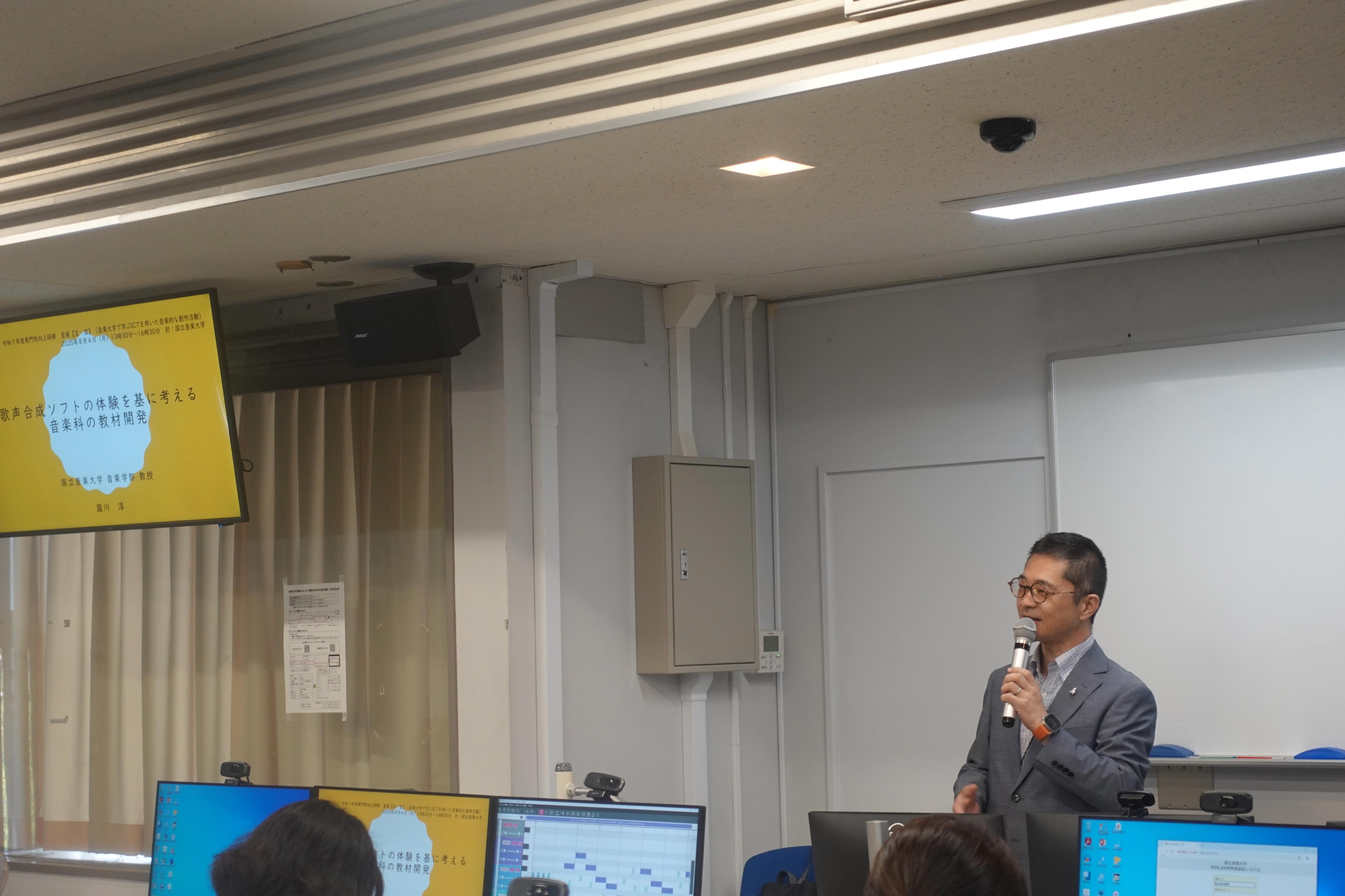 国立音楽大学キャンパスにて、東京都教職員研修センター様と本学の連携協定に基づく研修が開催されました。ヤマハ株式会社様のご協力の下、「ICTを活用した音楽科の教材開発」というテーマで、本学教授の瀧川先生がボーカロイドを使った講義を実施しました。
