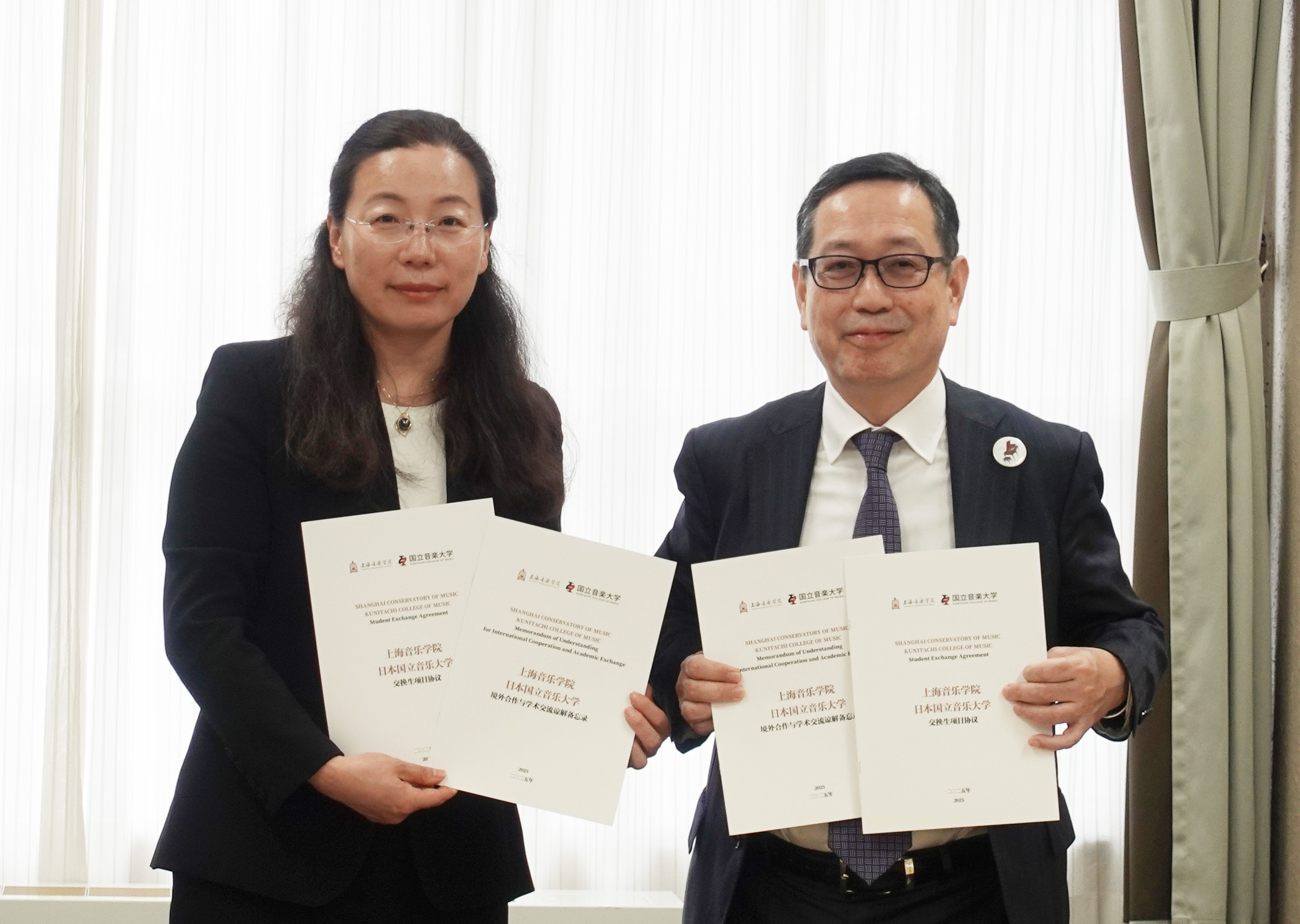 この度、国立音楽大学は上海音楽学院と交換留学協定を締結しました。上海音楽学院の陳雲副院長含む4名の皆さまが本学に来訪され、調印式と特別講座が行われました。