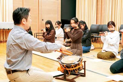 三味線、雅楽、箏、囃子といった楽器の演奏を通じて日本音楽固有の様式や表現を学ぶと同時に、洋楽と邦楽の共通点、相違点を探ります。