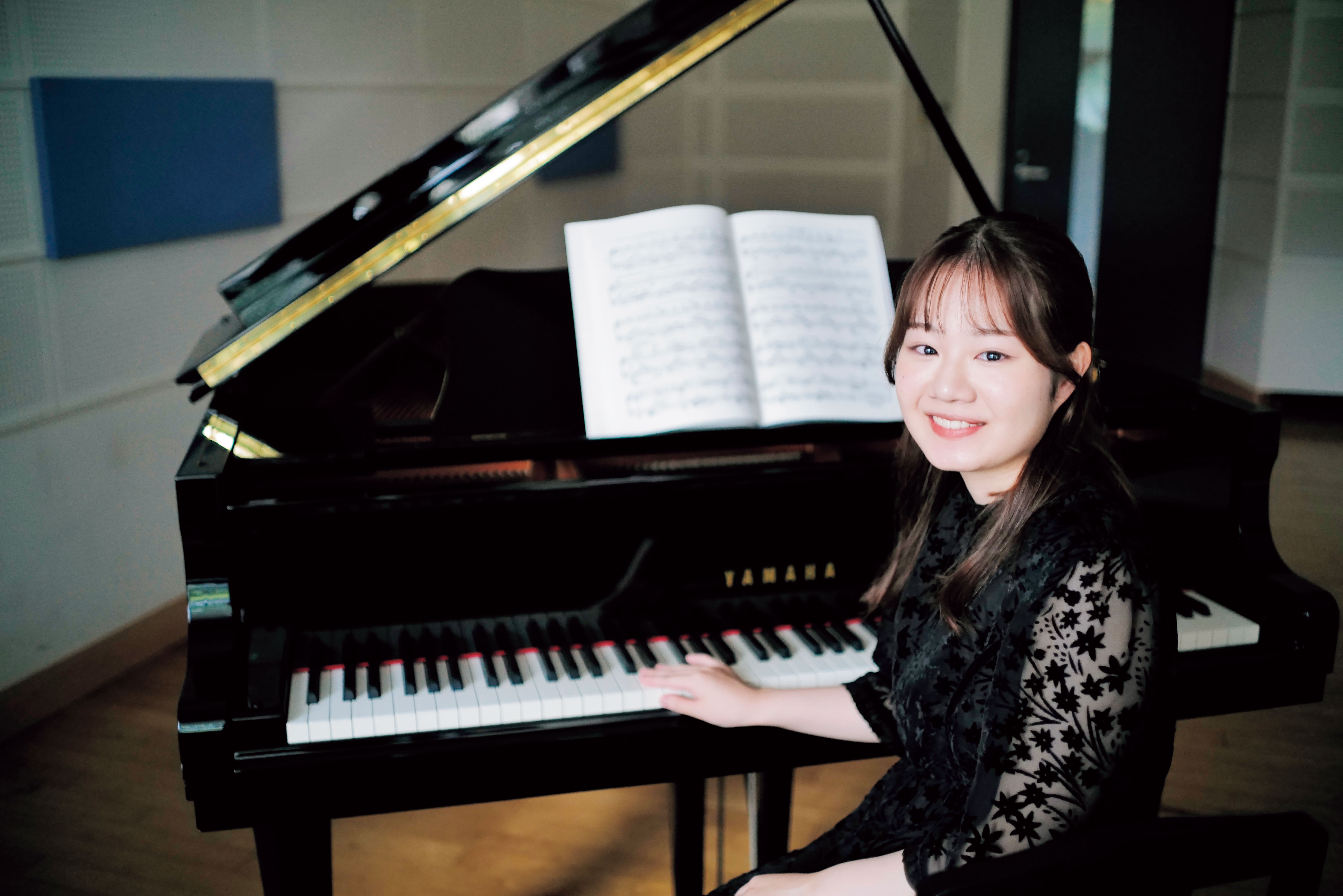 くにおんでは、ソリストとしての個人レッスンにとどまらず、連弾や室内楽、ピアノ指導研究など、幅広く学ぶことができます。特に印象に残っている授業は、作曲家と作品の関連性などを学ぶ「鍵盤楽器講義(演奏解釈)」。たとえばベートーヴェンとショパンの《葬送ソナタ》を比較すると、ともに第3楽章に「葬送行進曲」がおかれていますが、その後の楽章には大きな違いがあります。作曲家の死生観、音楽観、人生観が作品の音型などから読み取れる、というお話はとても興味深いものでした。楽譜から作曲家の感じたものを読み解く力の大切さを学びました。その力を身につけた上で、自分なりの解釈を演奏表現に生かしていきたいと思います。