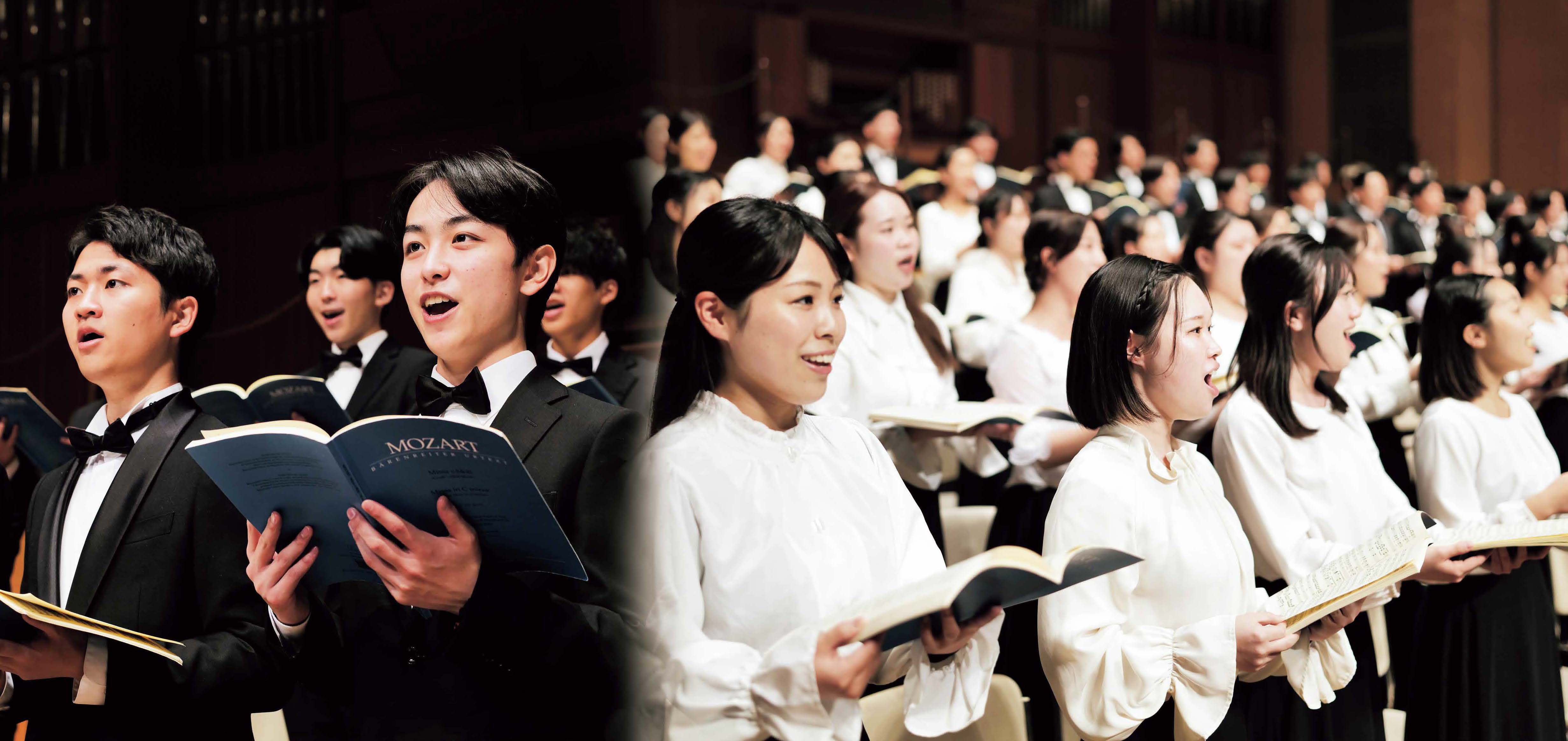 2024年11月、第23回声楽専修合唱演奏会が開催されました。キハラ良尚先生、工藤俊幸先生の指揮のもと、モーツァルト「大ミサ曲 ハ短調 K.427」、ストラヴィンスキー「ミサ曲」、尾高惇忠 女声合唱曲集「春の岬に来て」を披露。ソリストは学内オーディションで選ばれ、学生たちは合唱で参加し、日頃の練習の成果をホールに響かせました。